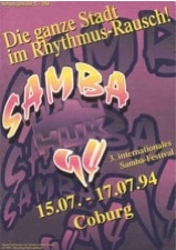 Hier die Übersicht über alle bisherigen Plakatmotive des Coburger Samba-Festivals