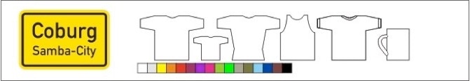 T-Shirt-Qualitäten und -größen von Kindergröße 92 bis Monstergerät 3XL sowie als Girly-Schnitt, in zwölf Farben und als Contrast-T gelb-grün und schwarzem Print verfügbar.